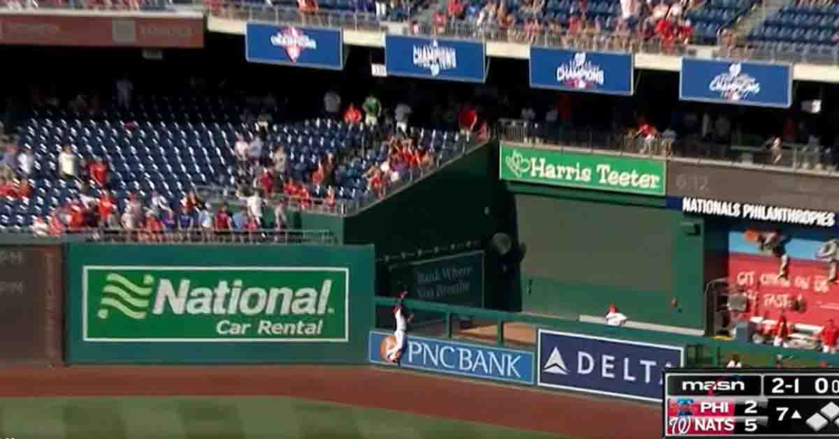 La increíble atrapada ayudó a Washington a tomar una ventaja de 5-2 sobre los Filis de Filadelfia.
