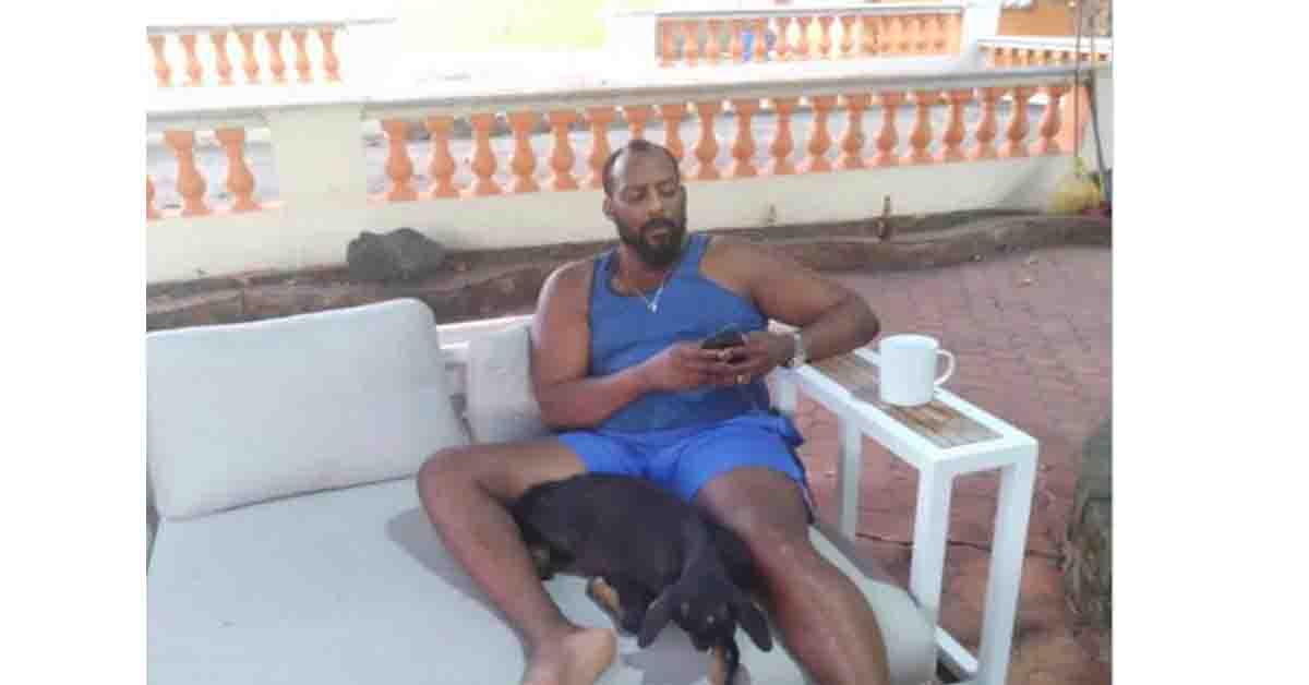 Nada mas y nada menos que un chivo, en una foto observamos al dominicano sentado en un mueble, viendo su celular, y a su lado estaba acostado en el mismo mueble un chivo.