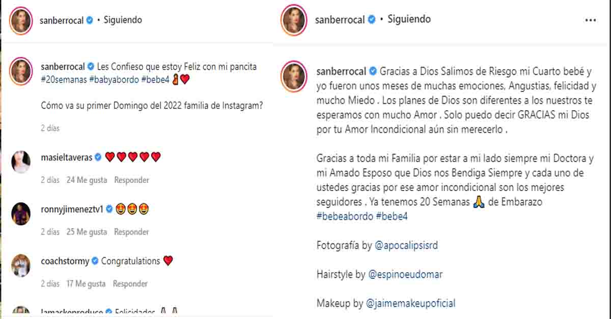 La comunicadora y presentadora de televisión Sandra Berrocal, a nuncio su embarazo la pasada semana, la cual cuenta con al rededor de 20 semanas de gestación.